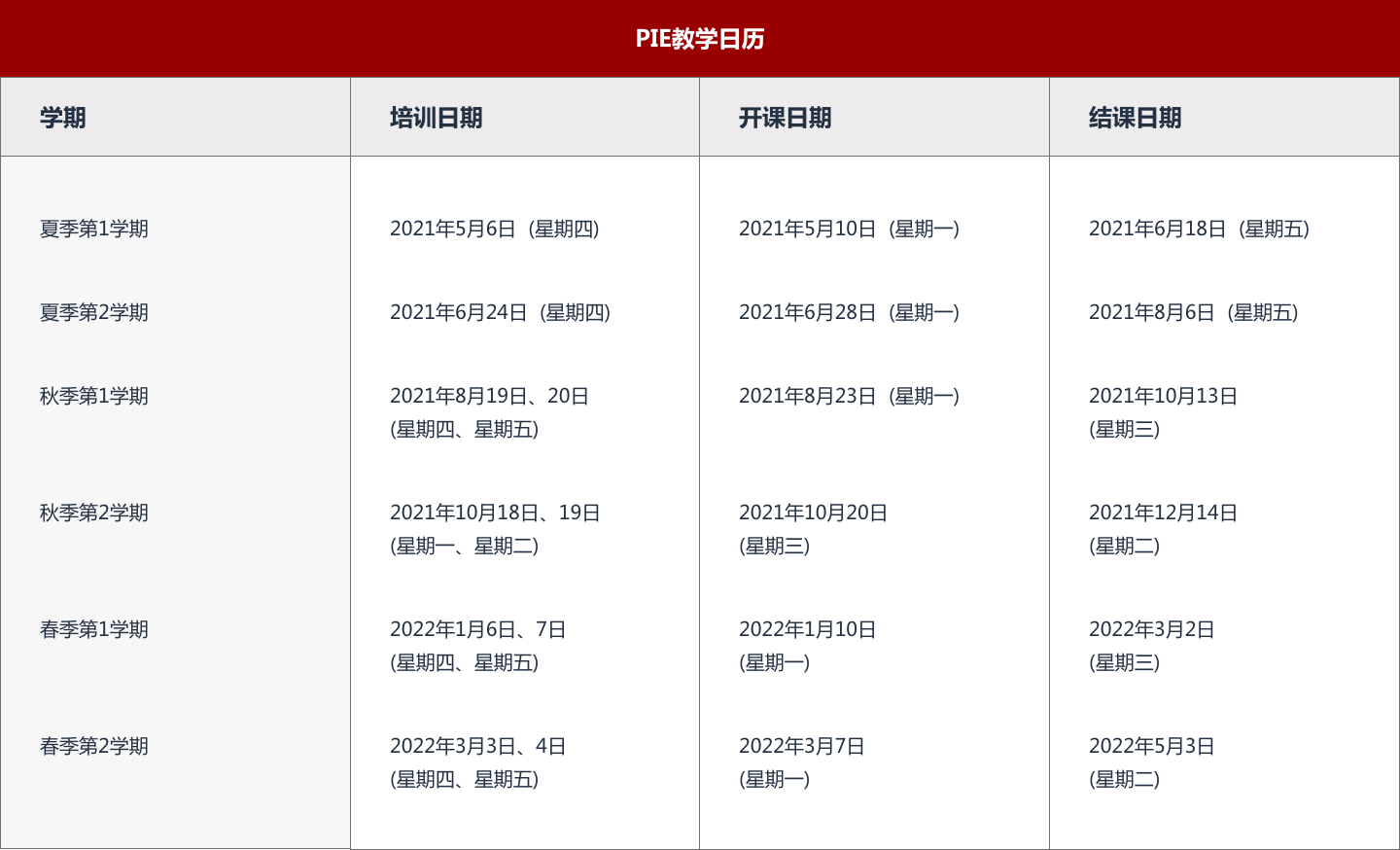PIE每年开展6期。各期均为140学时。各期费用一致。